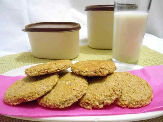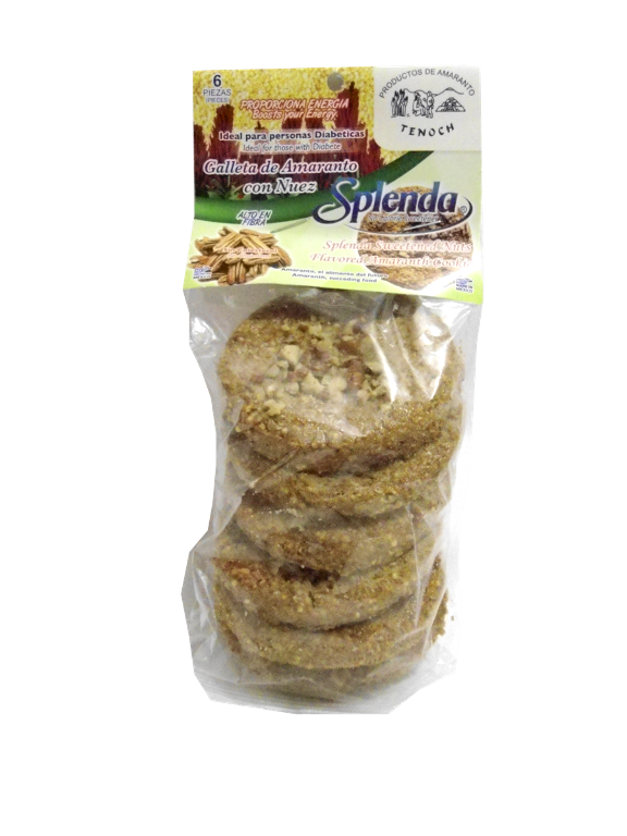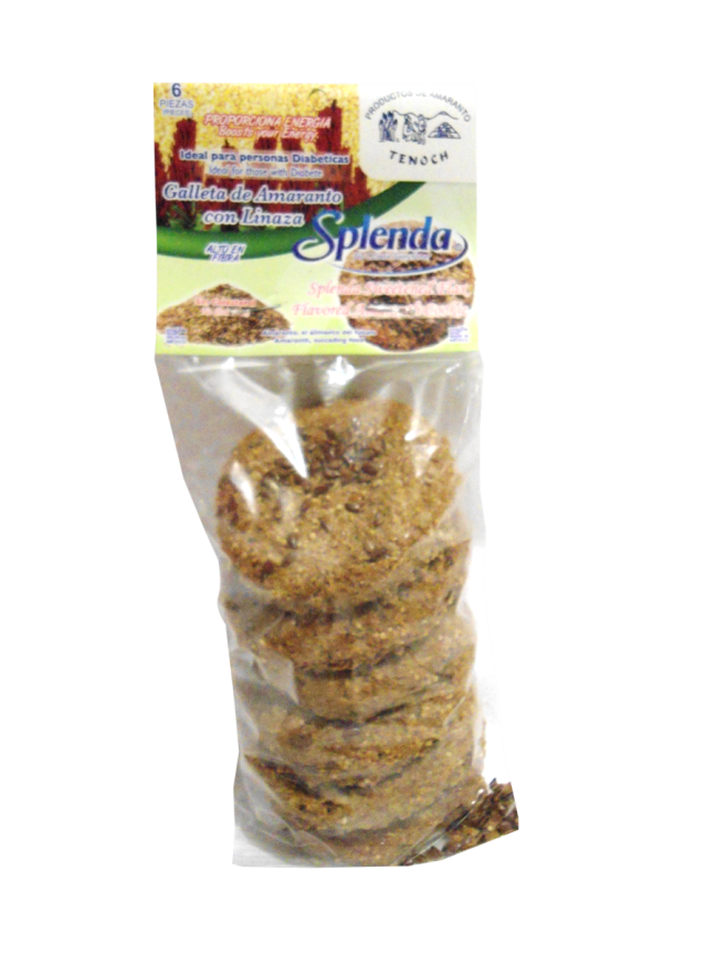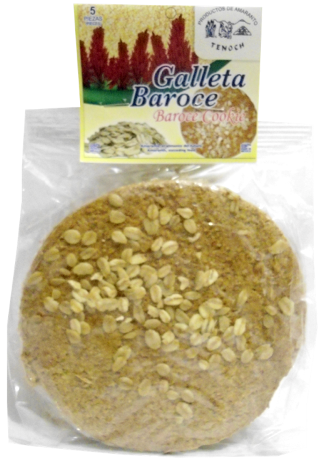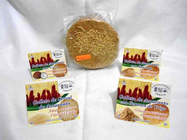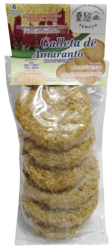Nutritiva galleta de amaranto endulzada con fructuosa y rociada de Ajonjolí, avena, coco, o cereal de amaranto.