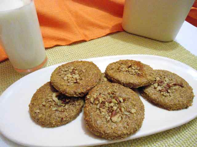 Galleta elaborada con Harina integral y rociada de ajonjolí o avena,